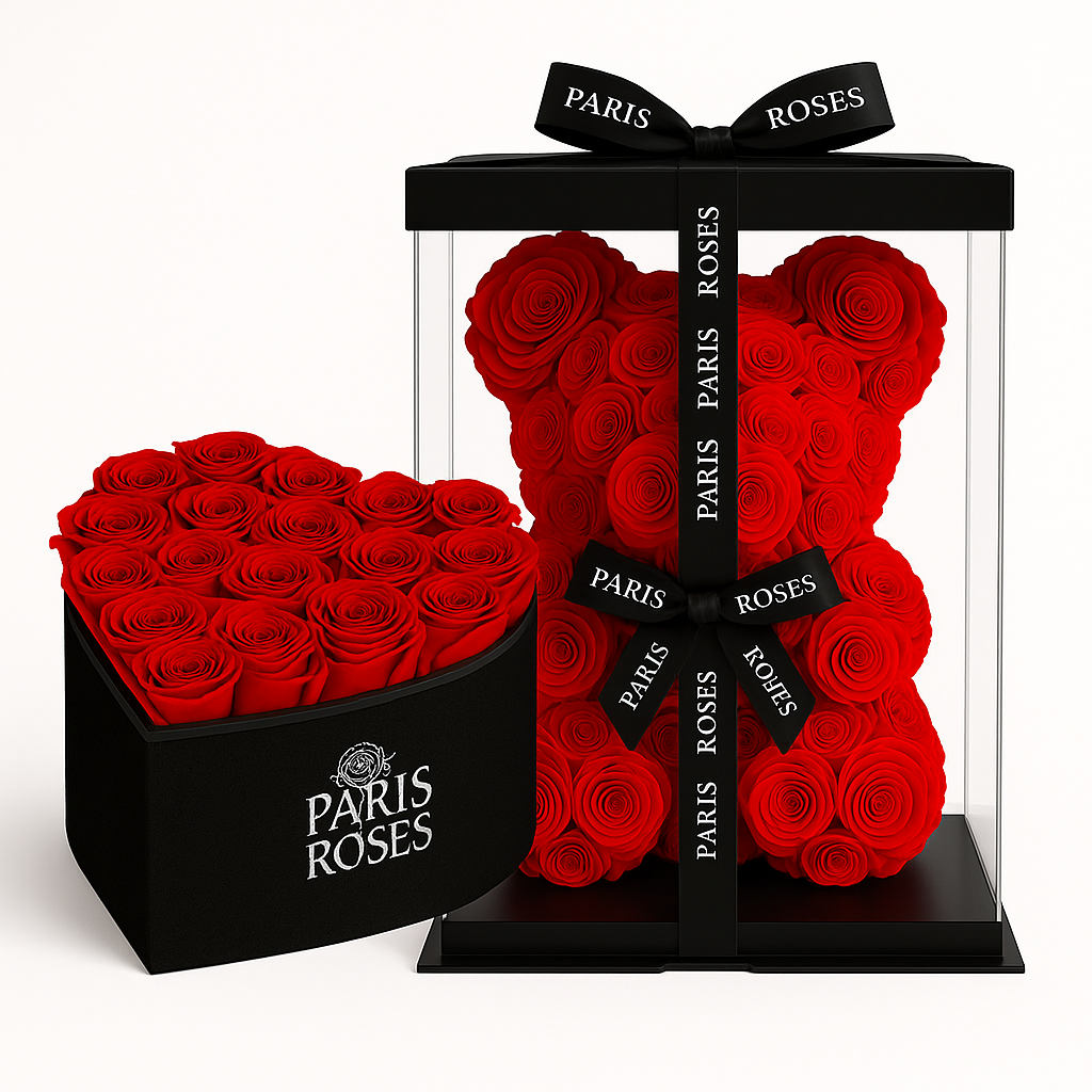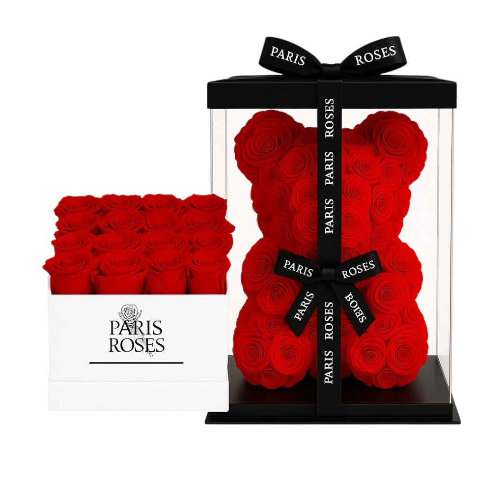 Preuve d'amour par excellence, l'Ours en Rose combine le plaisir de recevoir un bouquet de fleurs à la tendresse de câliner un ours en peluche.