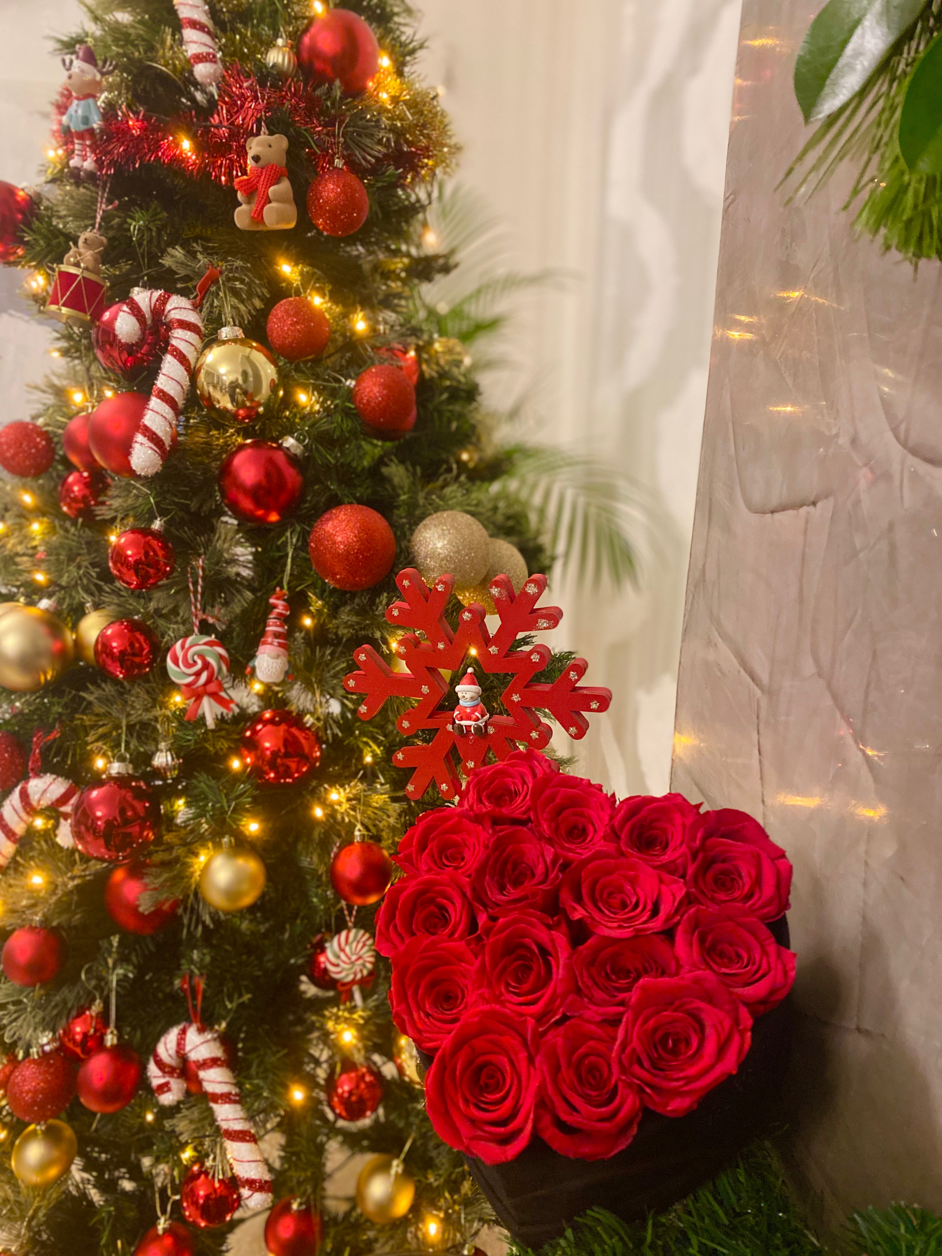 Boîte en forme de Coeur avec Roses Éternelles Rouges